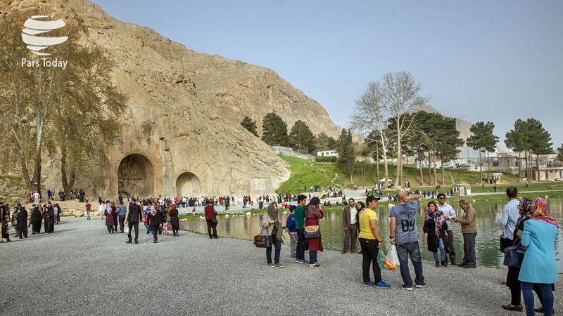 تصاویر:حضور گردشگران نوروزی در محوطه تاریخی طاق بستان