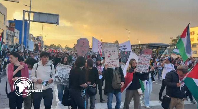 حاضران در فرودگاه پرچم های تونس و فلسطین را برافراشتند و شعارهایی در حمایت از مقاومت سر دادند و جنایات اشغالگران اسرائیل علیه مردم فلسطین را محکوم کردند.
