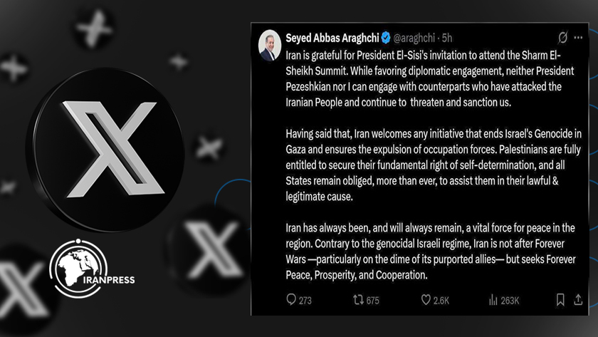 وزیر امور خارجه ایران اعلام کرد مسعود پزشکیان در نشست صلح غزه که قرار است در شرم‌الشیخ مصر برگزار شود، شرکت نخواهد کرد.