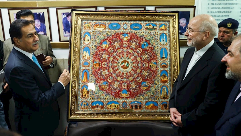 همچنین در این مراسم، رئیس مجلس شورای اسلامی هدیه‌ای نفیس مزین به پرچم های ایران و پاکستان و نمادهای ملی، تاریخی و مذهبی دو کشور را به سردار ایاز صادق، همتای پاکستانی خود اهدا کرد.