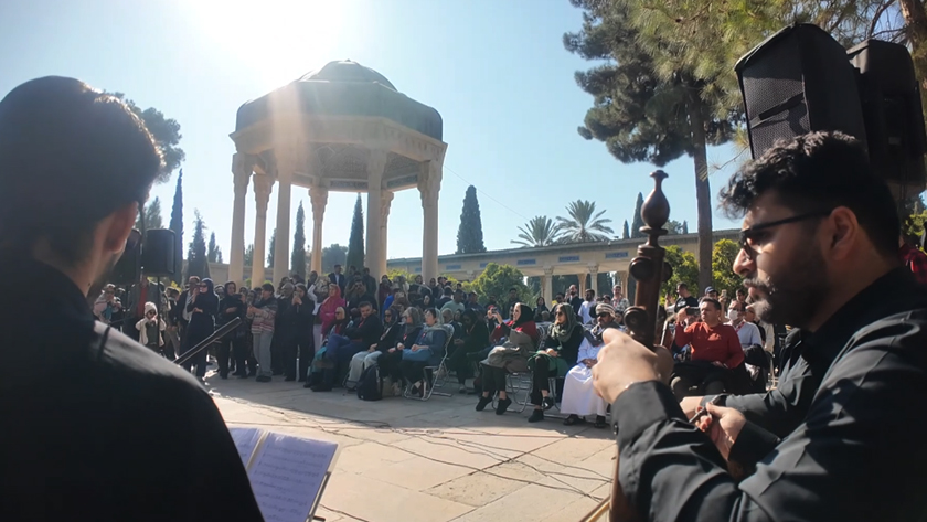 اجرای گروه موسیقی نوبان در کنار گشت و گذار سینماگران در آرامگاه حافظ، حال و هوای دلنشین حافظیه را دوچندان کرده بود.