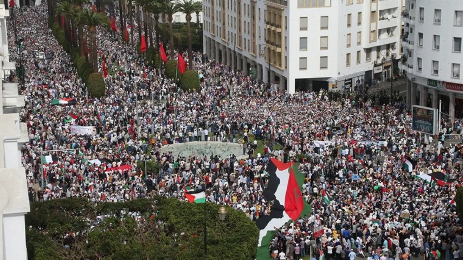 هزاران نفر در شهرهای مختلف مراکش در روز جهانی همبستگی با مردم فلسطین به خیابان‌ها آمدند.