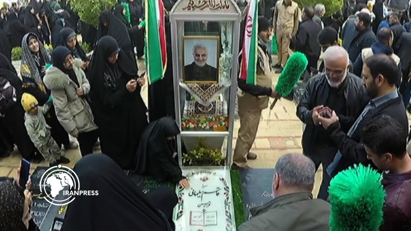 از نخستین ساعات صبح زائران با در دست داشتن پرچم‌های ایران و تصاویر سردار دل‌ها، فضای گلزار را آکنده از شور و ارادت کرده‌اند و صحنه‌هایی بی‌نظیر از وحدت و همدلی را رقم زده‌اند.
