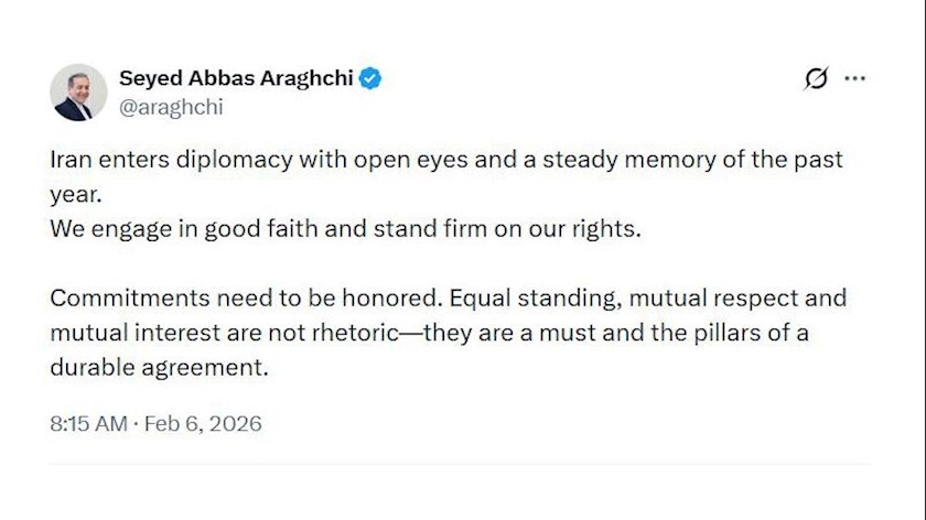 عراقچی در این پیام نوشت: ایران با نگاهی آگاهانه و با تجربهای روشن از گذشته وارد عرصه گفتوگو میشود و در عین حسن نیت، با قاطعیت از حقوق خود دفاع خواهد کرد.