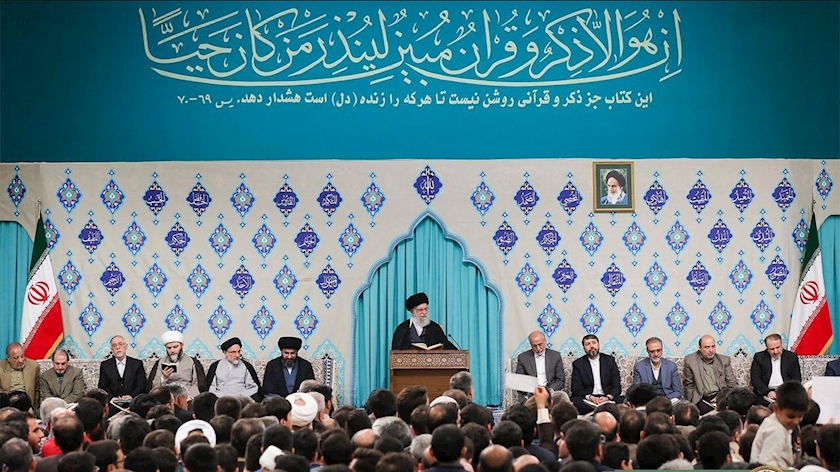 به گزارش خبرگزاری ایران پرس، محفل انس با قرآن کریم با حضور رهبر انقلاب اسلامی و جمعی از اساتید و قاریان ممتاز و بینالمللی مصحف شریف، عصر امروز پنجشنبه ۳۰ بهمن ۱۴۰۴ در حسینیه امام خمینی (ره) برگزار شد.